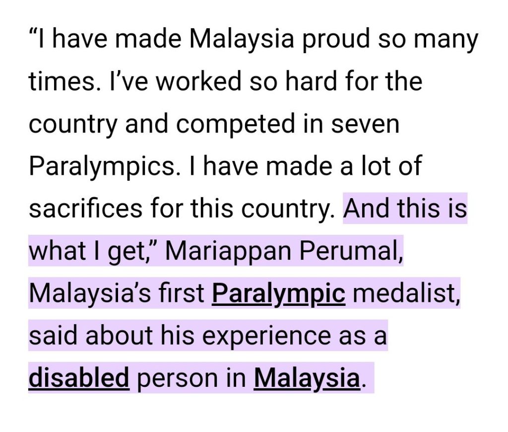 His career spanned over two decades, during which he represented Malaysia in Paralympic Games from 1988 to 2004, winning medals and accolades for his strength and skill.However, despite his achievements, Mariappan’s contributions were often overshadowed by mainstream athletes.